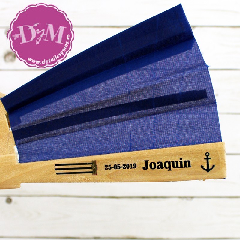 Adhesivos transparentes para personalizar los abanicos de la comunión de estilo marinero. Con un marinero de rayas en azul maríno y nudos .Se personaliza con el ombre del niño y la fecha de la comunión.