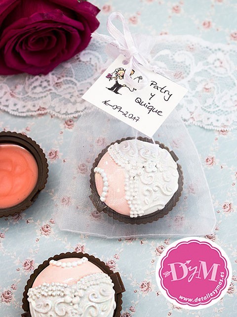 Bálsamo de labios con un vestido de novia en la tapa .