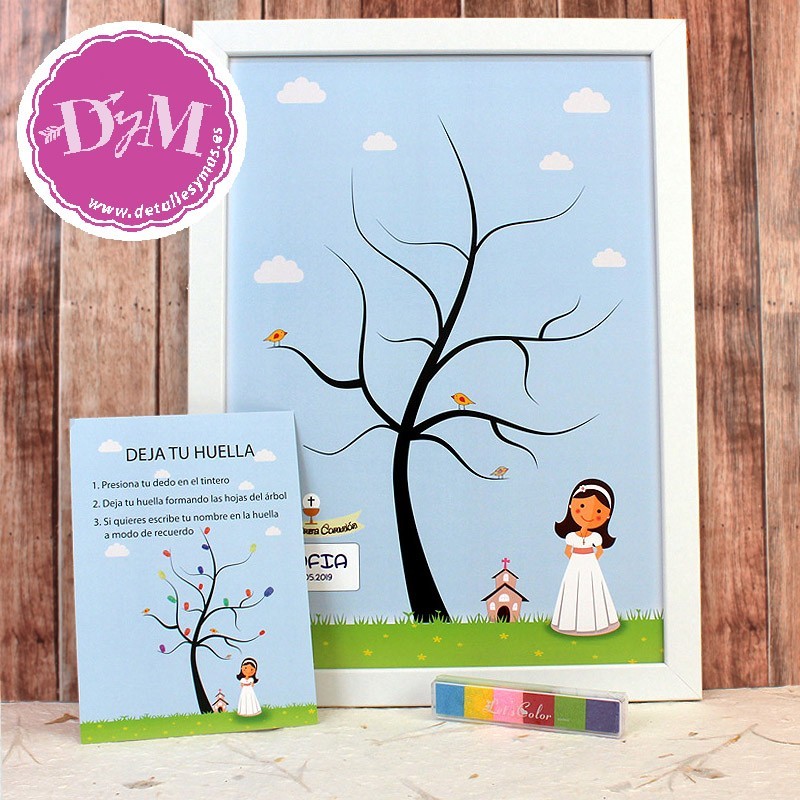 Árbol de huellas personalizado de comunión para niña. Personalizado con el nombre de la niña (solo nombre) y la fecha de la comunión.
