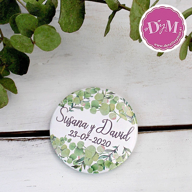 Chapa, espejo, abrebotellas o imán para boda Hojas de Eucalipto