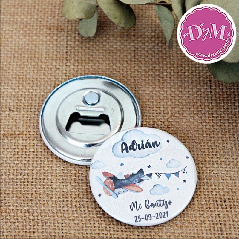 Chapa espejo o abrebotellas de Bautizo Avioneta