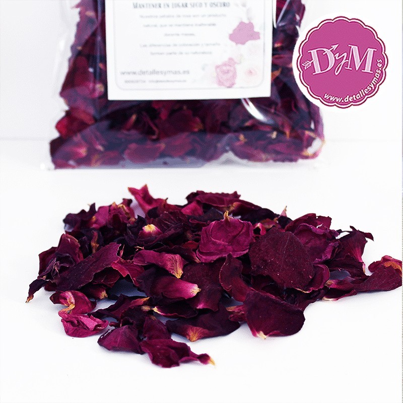Mezcla de preciosos pétalos de rosa en color Vino, procedente de rosas magenta en bolsas de 1 litro.