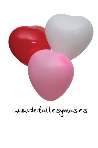 Globos de latex de hasta 38 cms de diámetro con forma de corazón. Vienen en paquetes de 10 unidades (por colores) y los hay disponibles en blanco, rojo y rosa