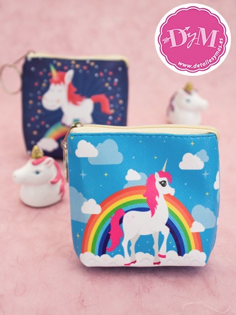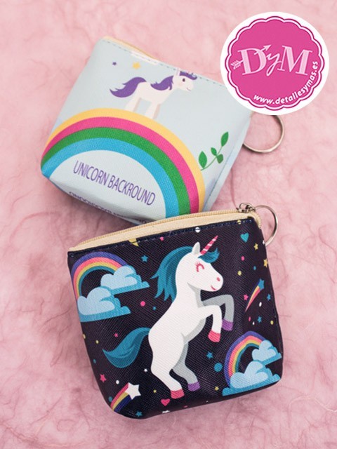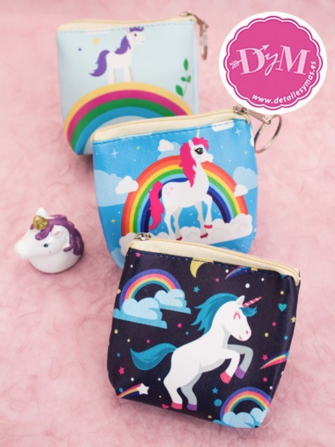 Pequeño monedero de unicornios con cremallera con colores vivos. 6 modelos distintos que se sirven surtidos.