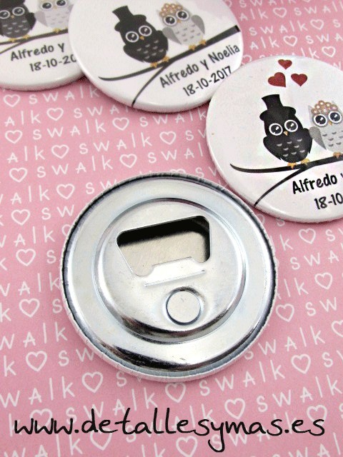 Abrebotellas para bodas Buhos personalizado