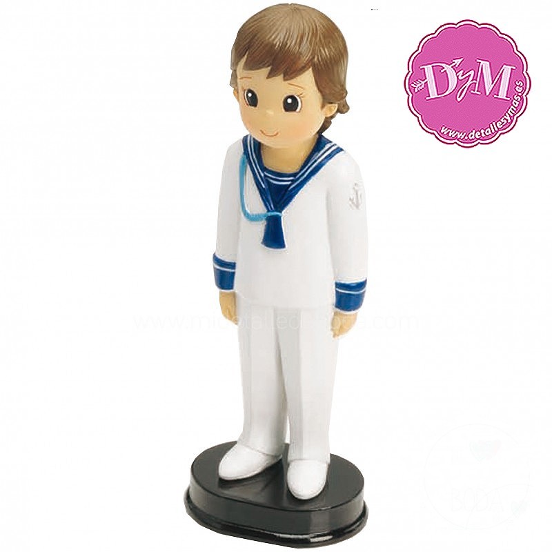 Figura de niño de comunión vestido con el clásico traje blanco de marinero .