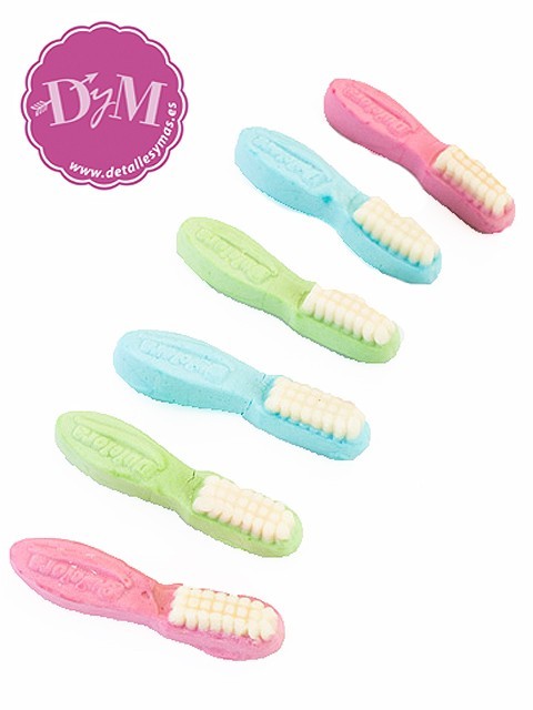 Divertidas gominolas en forma de cepillos de dientes en 3 colores para alegrar el candy bar o bolsas de chuches .