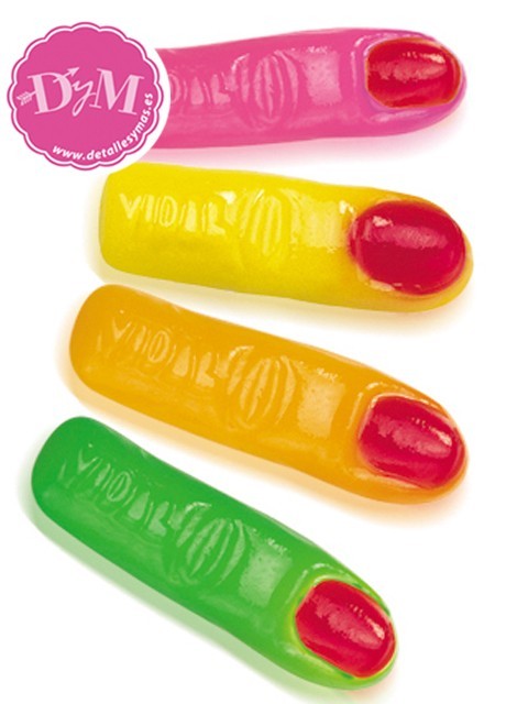 Un kilo de deliciosos dedos de gominola de acabado brillante. Las uñas son de fresa ácida . Irresistibles .