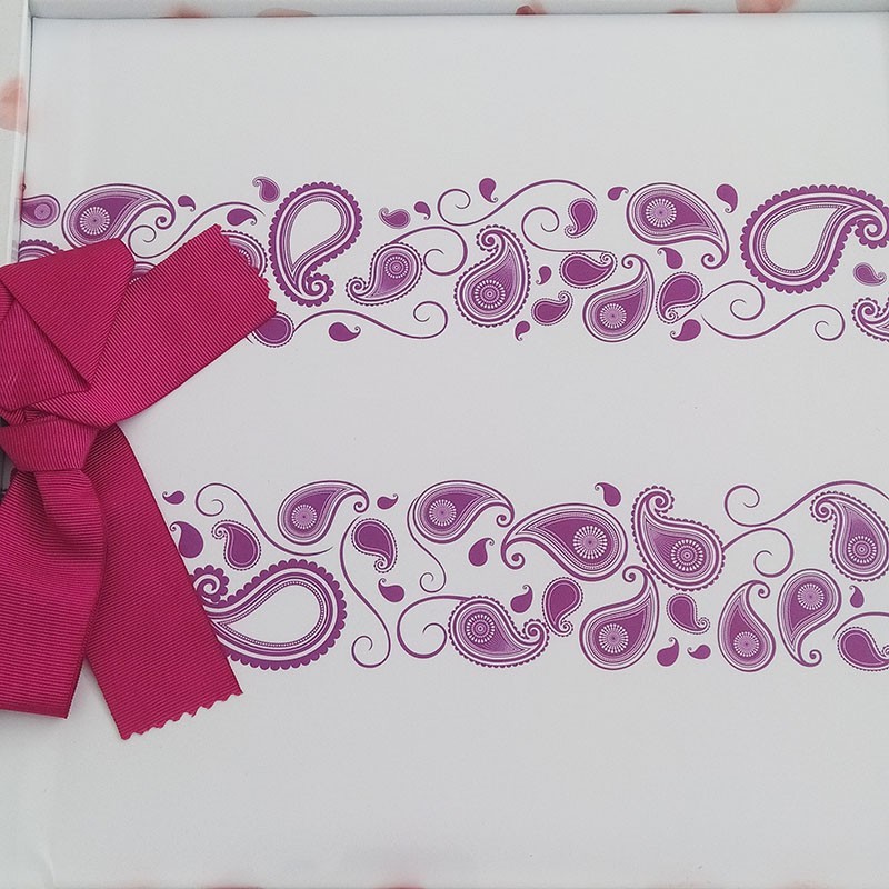 Moderno diseño para este libro de firmas con 2 preciosas cenefas en color morado..