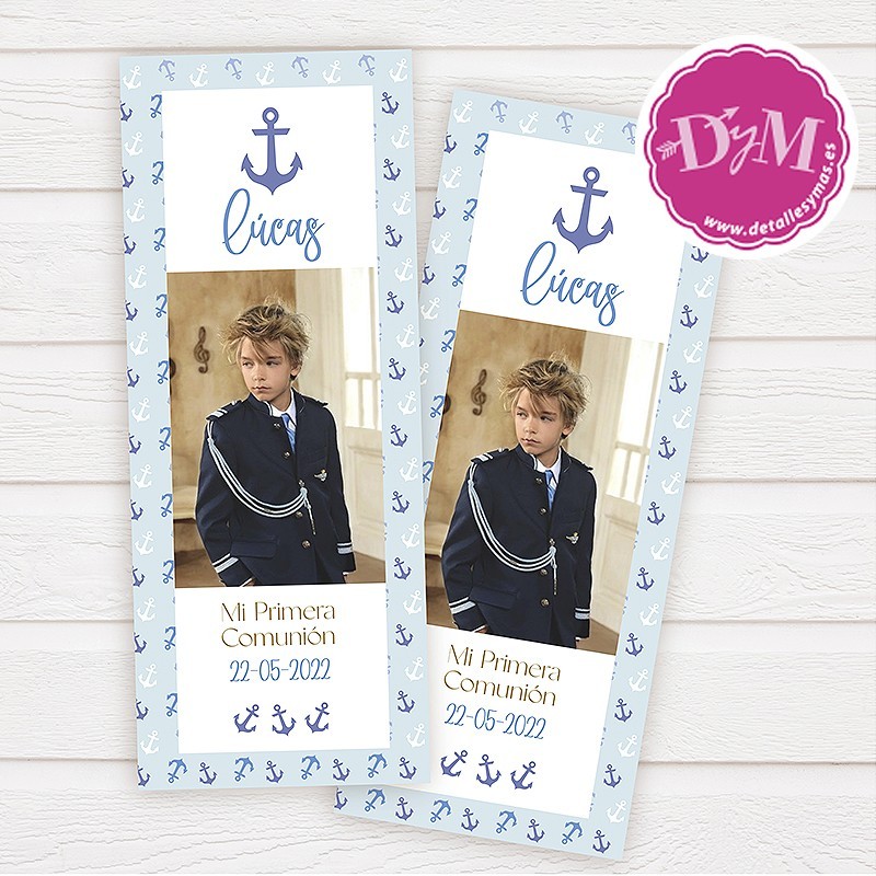 Marcapáginas con foto para comunión marinero personalizado