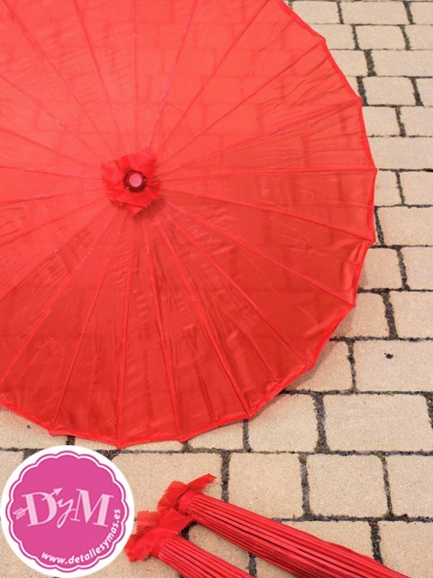 . Sombrillas de madera y tela de color rojo. Sin decorar . De 80 cmss de diámetro