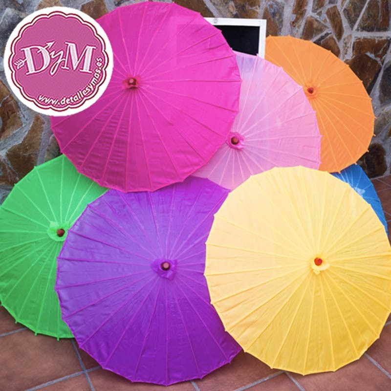 . Sombrillas de madera y tela de color morado. Sin decorar .