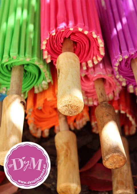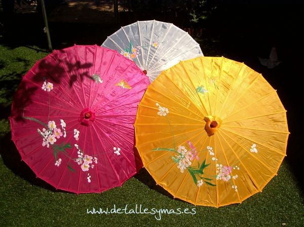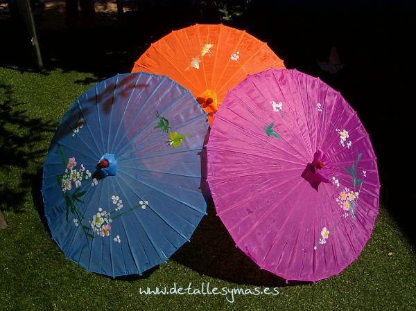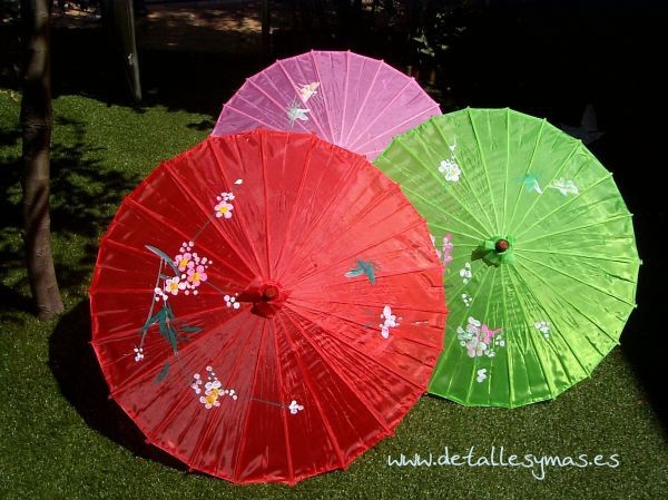 Muy coloridas y variadas, estas sombrillas chinas están hechas de madera y tela pintadas a mano.