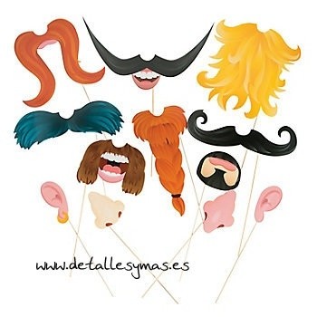 Conjunto de 12 piezas para fotocall de gran tamaño con bigotes gigantes, barbas ,narices y orejas . Fotos divertidas garantizadas.