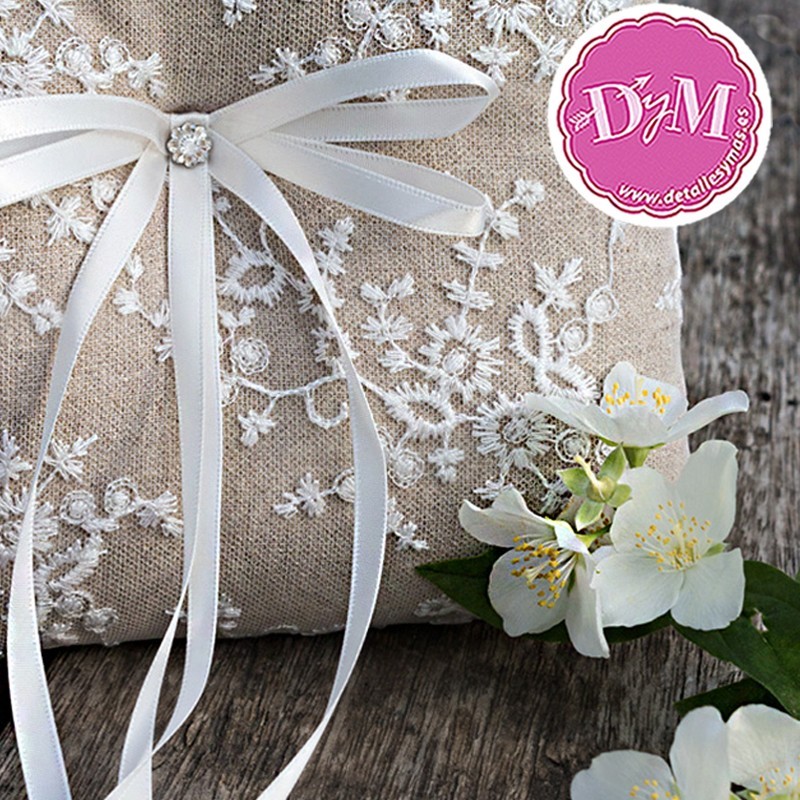 Los anillos se atan mediante el lazo central de raso. Mide 20 x 20cms