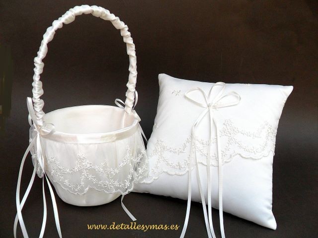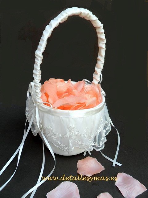 Cesta de boda para llevar las arras o flores. Con finas flores bordadas.